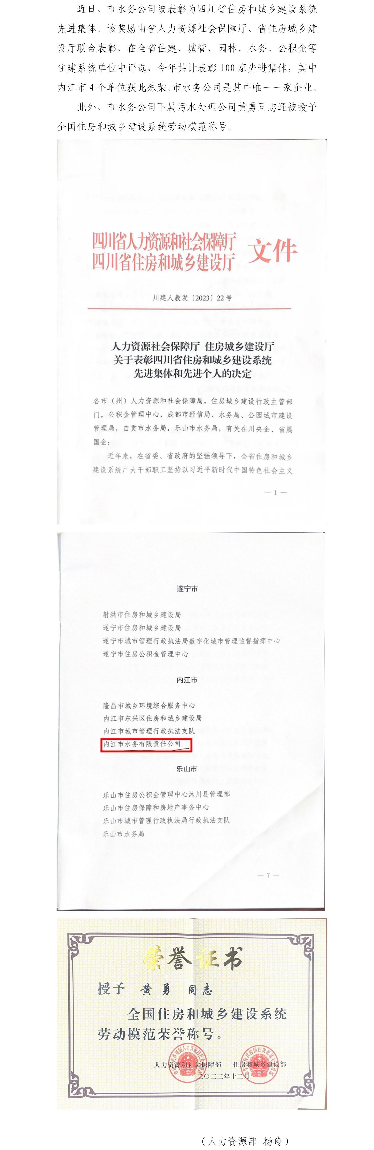 內(nèi)江唯一一家企業(yè)!市水務(wù)公司榮膺全省住建系統(tǒng)先進(jìn)集體