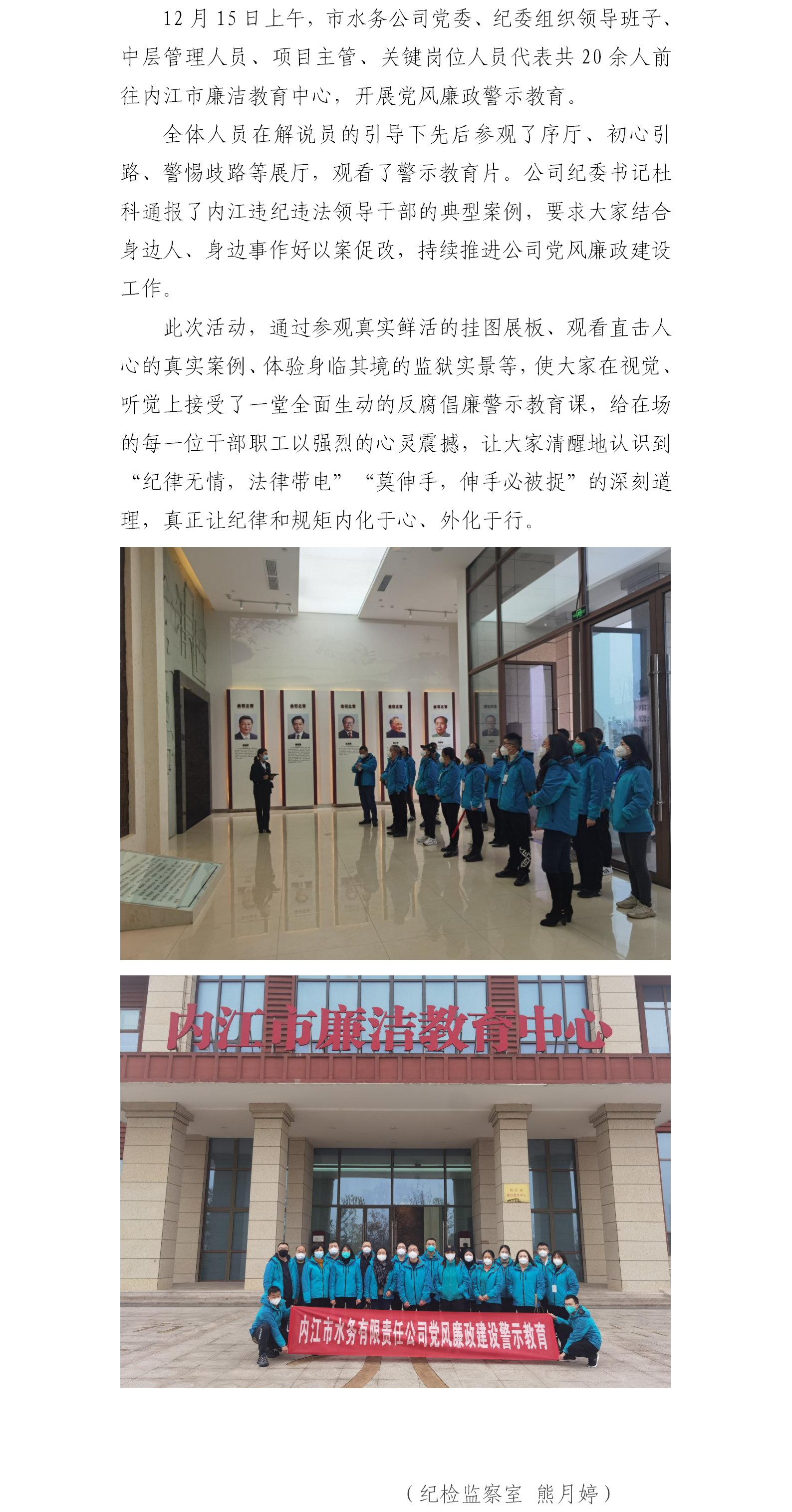 公司組織干部職工到內江市廉潔教育中心開展警示教育