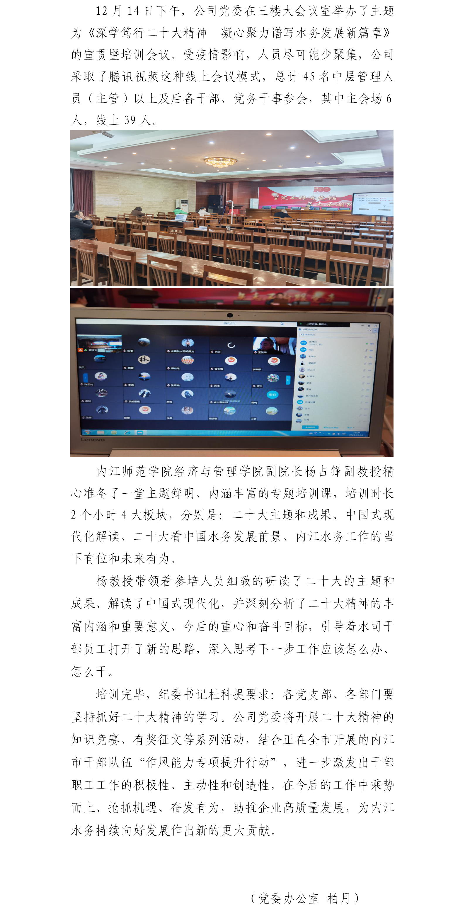 公司黨委舉辦黨的二十大精神宣貫暨干部培訓會