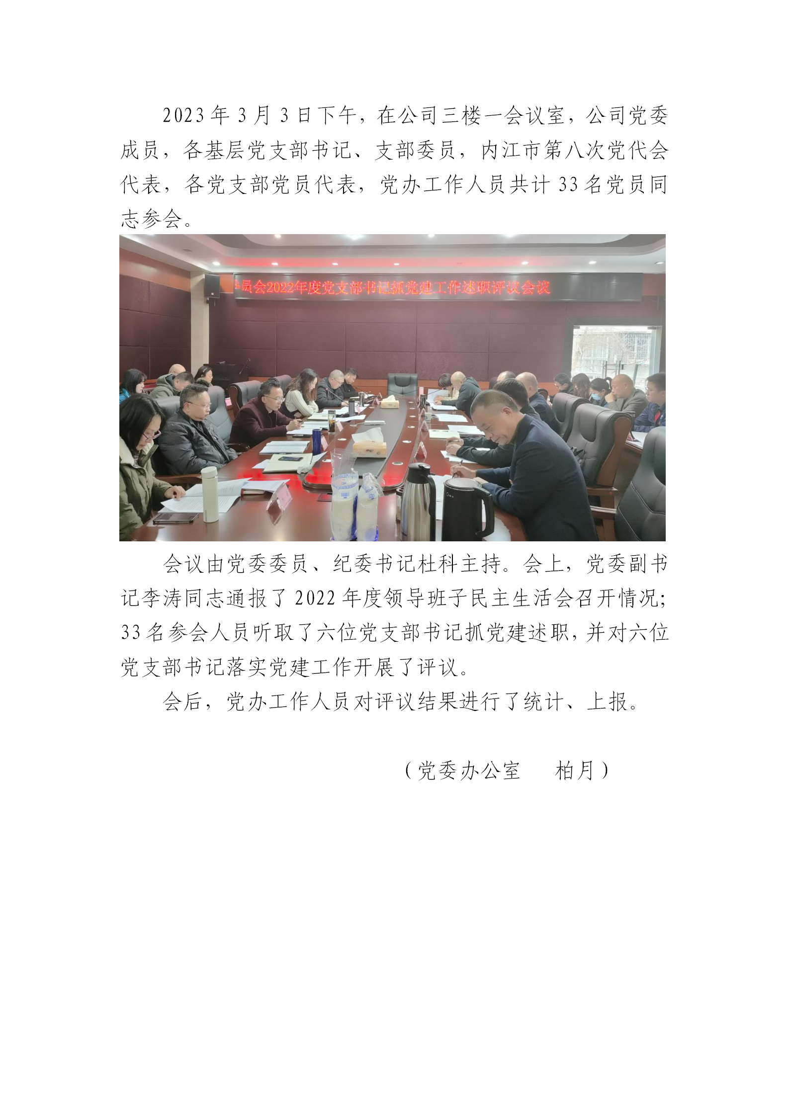 公司黨委組織召開2022年度黨支部書記抓黨建工作述職評議會議