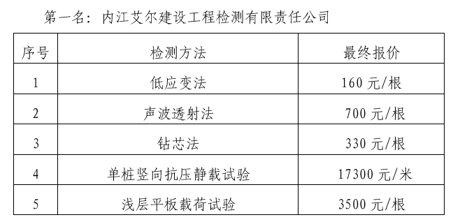 內江市污水處理廠提標改造工程樁基檢測單位中標結果公示
