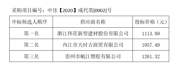 內(nèi)江市水務有限責任公司PPR給水管及管件采購項目評標結(jié)果公示