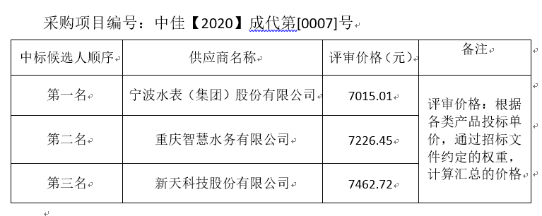 內江市水務有限責任公司水表采購項目 評標結果公示