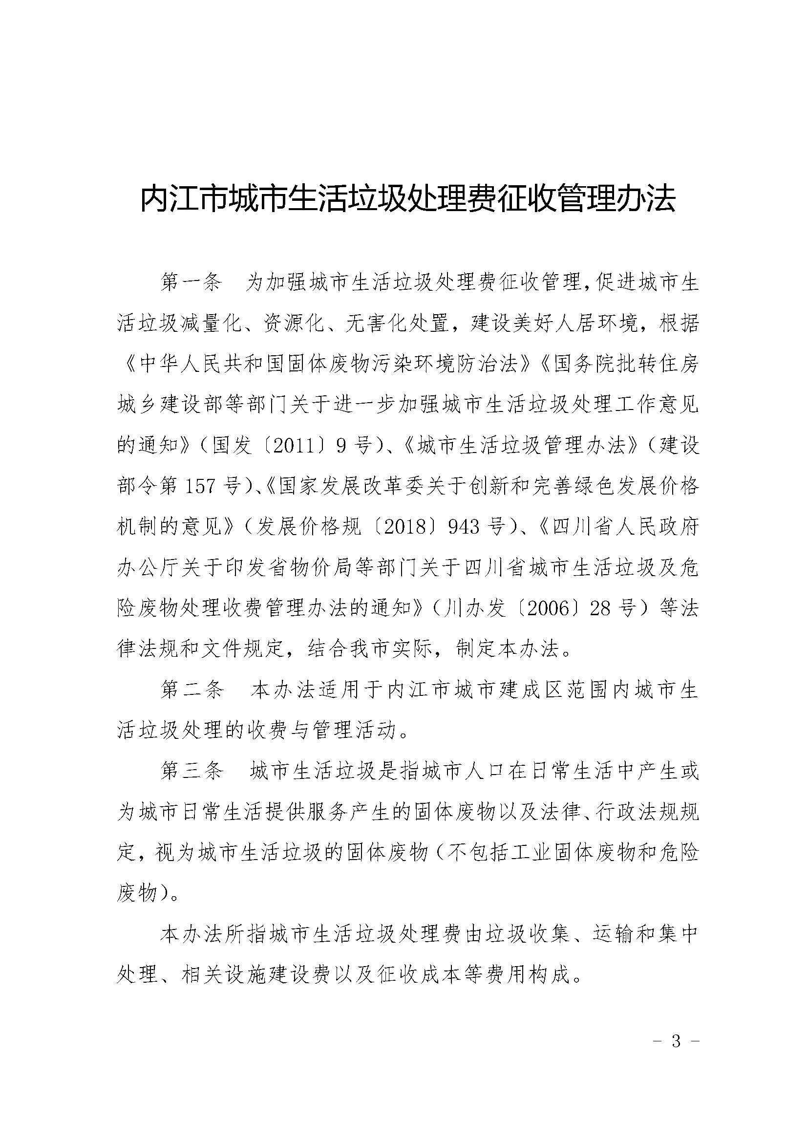 關于印發《內江市城市生活垃圾處理費征收管理辦法》的通知