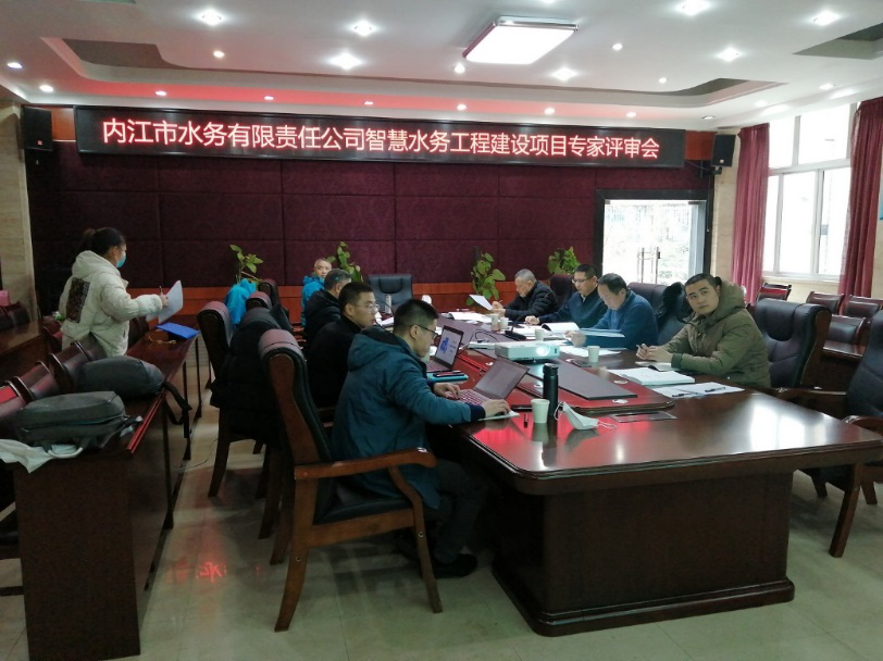 會上,蒲彬對公司智慧水務工程項目進行了介紹,文件編制單位對《內江市水務有限責任公司智慧水務工程設計文件》進行了介紹。專家組就相關文件內容與編制單位進行了溝通交流,并提出建議意見。