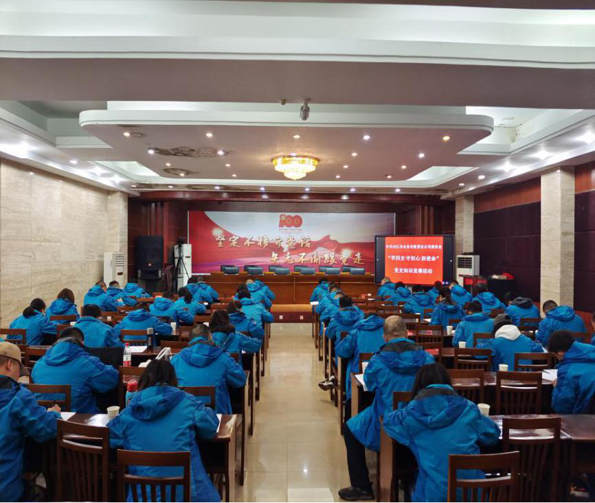 為深入推進(jìn)黨史學(xué)習(xí)教育,進(jìn)一步激發(fā)廣大黨員干部學(xué)習(xí)熱情,12月16日下午,市水務(wù)公司黨委組織6個(gè)基層黨支部開展了“學(xué)黨史 守初心 擔(dān)使命”黨史知識(shí)競(jìng)賽活動(dòng)。本次競(jìng)賽采取筆試答卷的形式,題目包括單選題、多選題、判斷題、填空題四種題型。48名黨員代表支部參加了比賽。