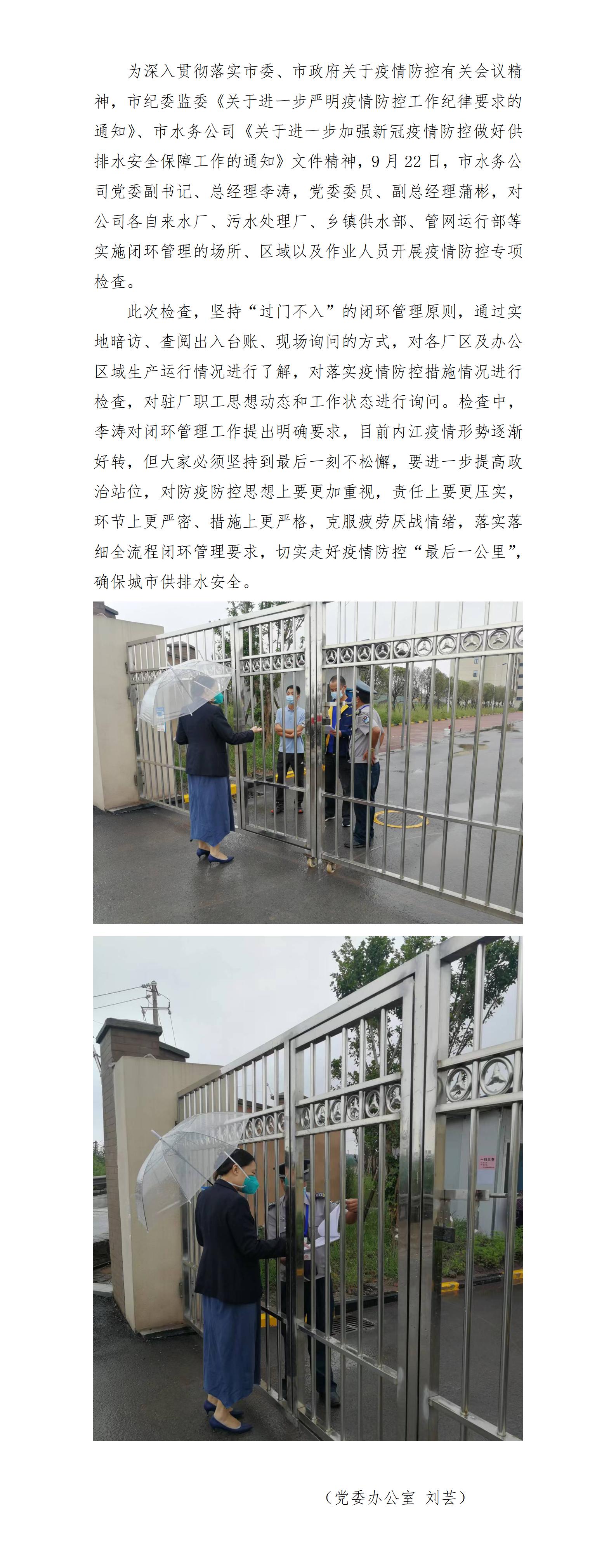 市水務公司開展閉環(huán)管理專項檢查 筑牢疫情防控堅實防線
