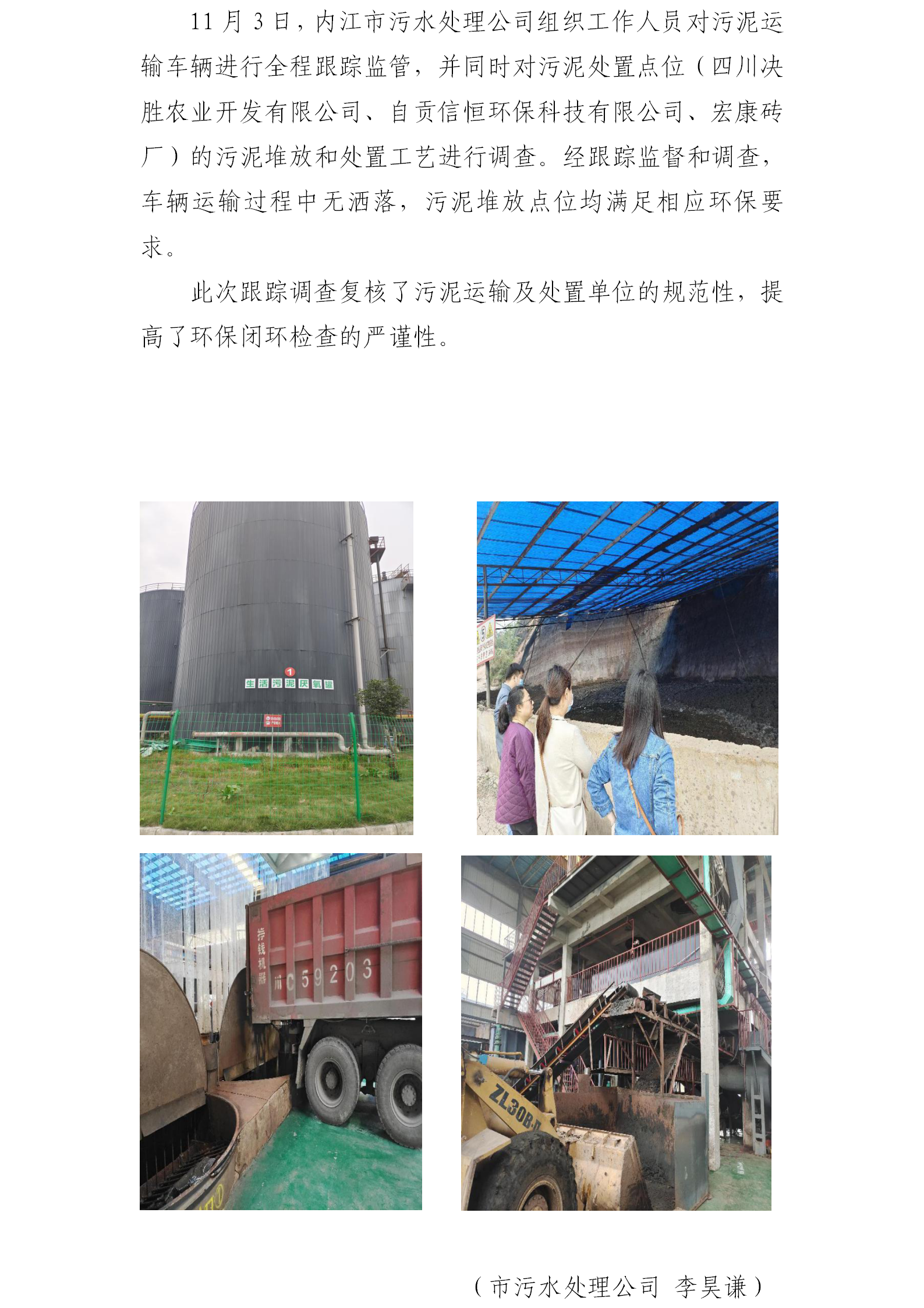 內(nèi)江市污水處理有限責(zé)任公司 跟蹤污泥運(yùn)輸及處置情況