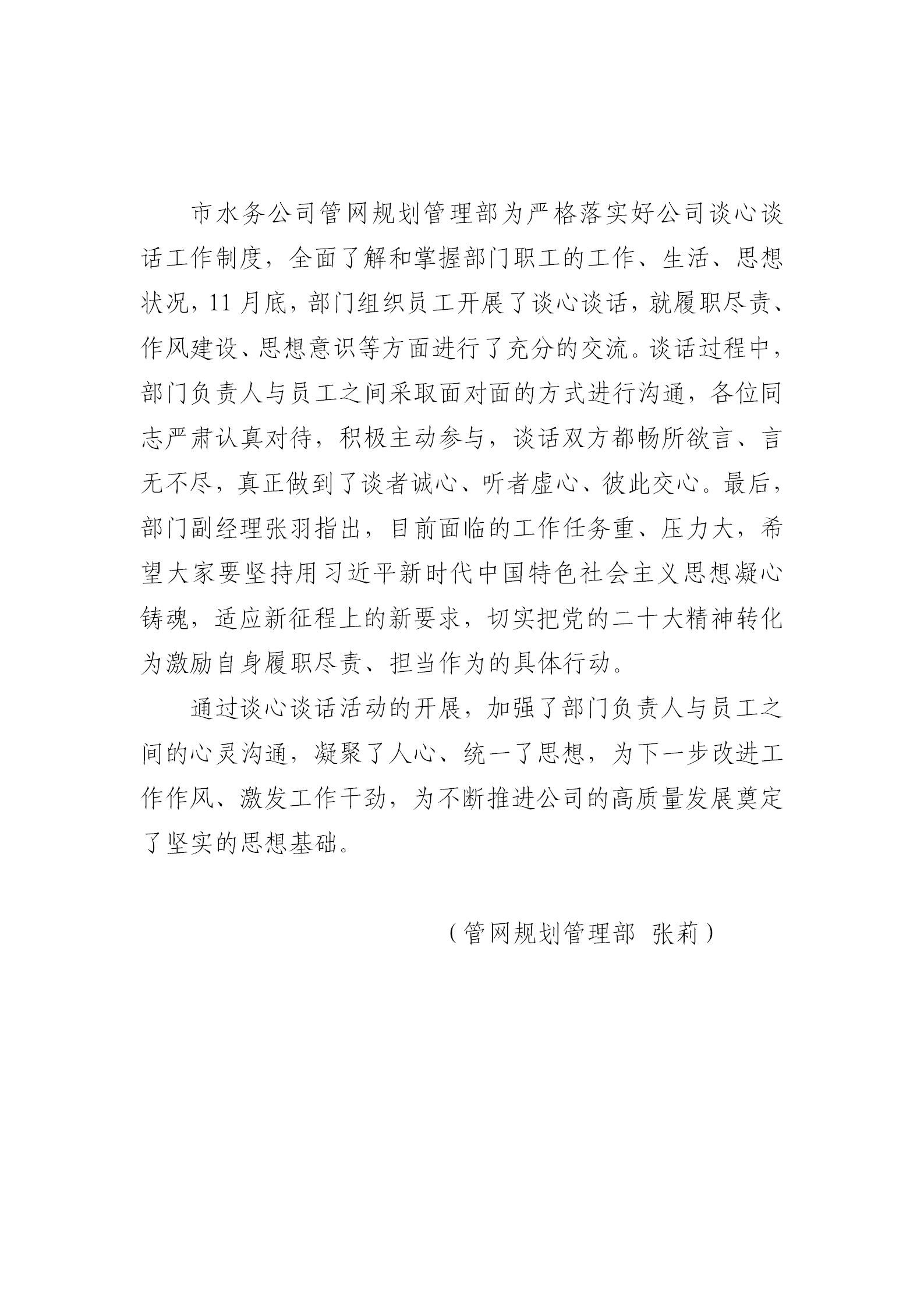 管網(wǎng)規(guī)劃管理部開展談心談話活動
