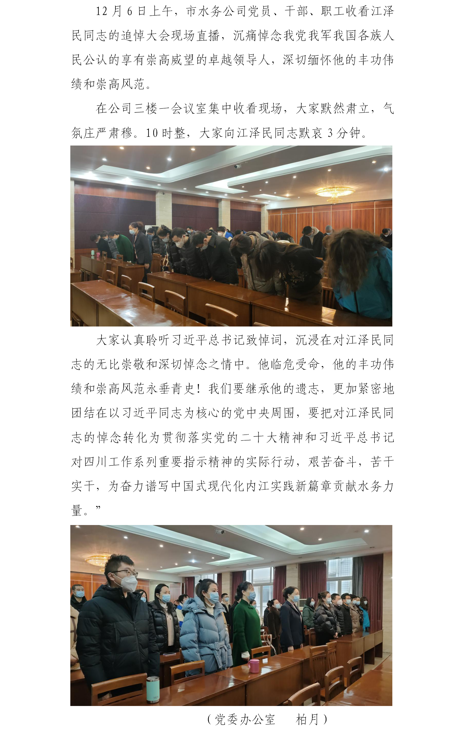 市水務(wù)公司黨員干部群眾收看江澤民同志追悼大會現(xiàn)場直播