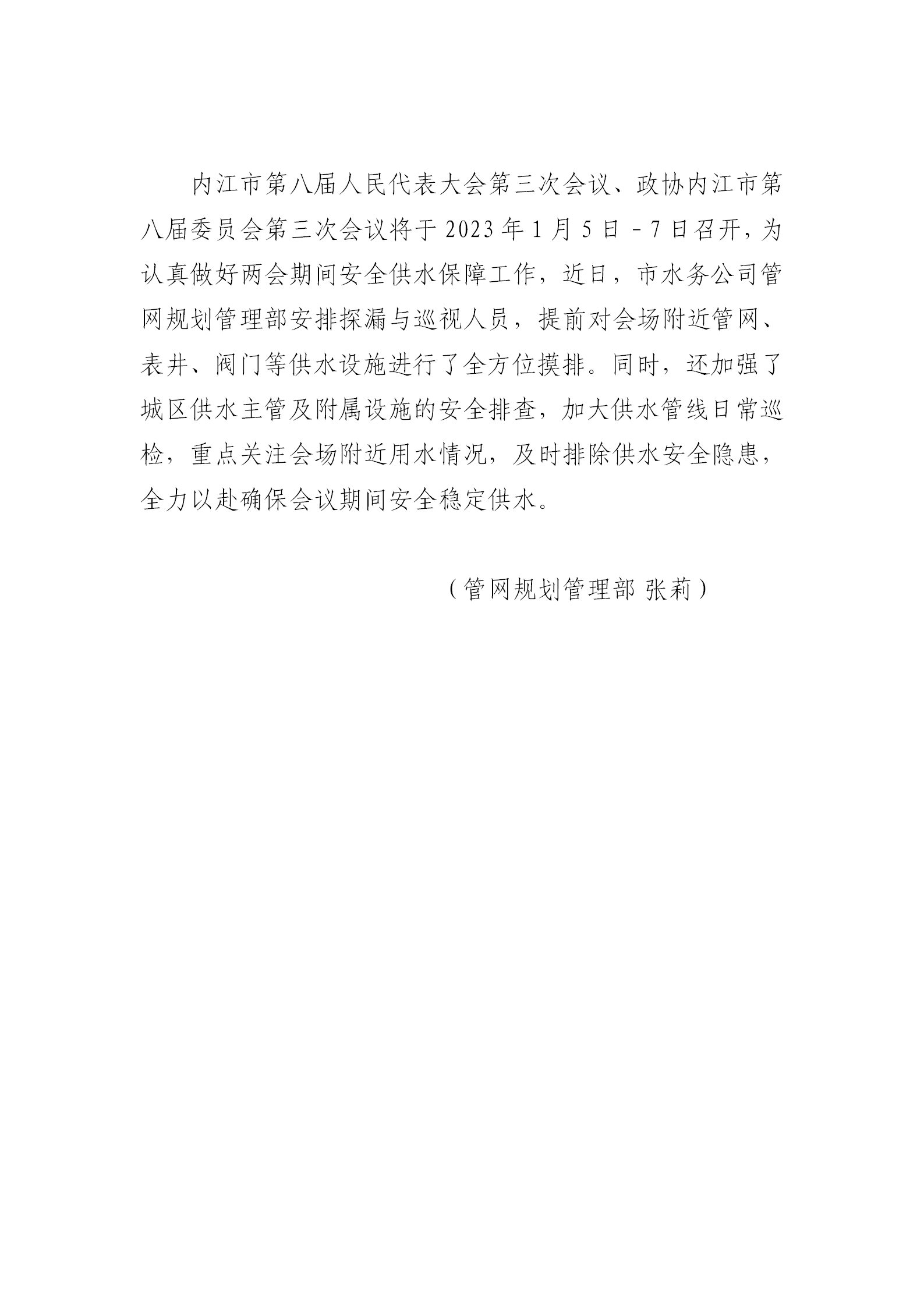 安全穩(wěn)定供水 兩會(huì)順利召開(kāi)