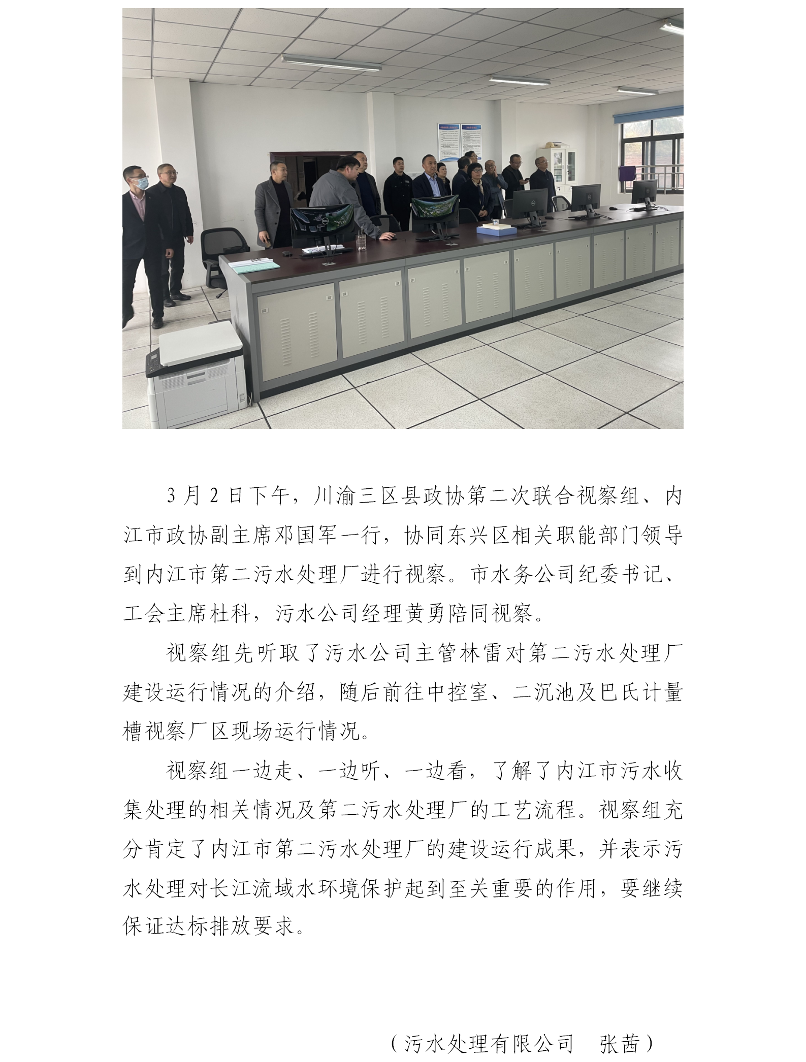 川渝三區縣政協第二次聯合視察組視察內江市第二污水處理廠