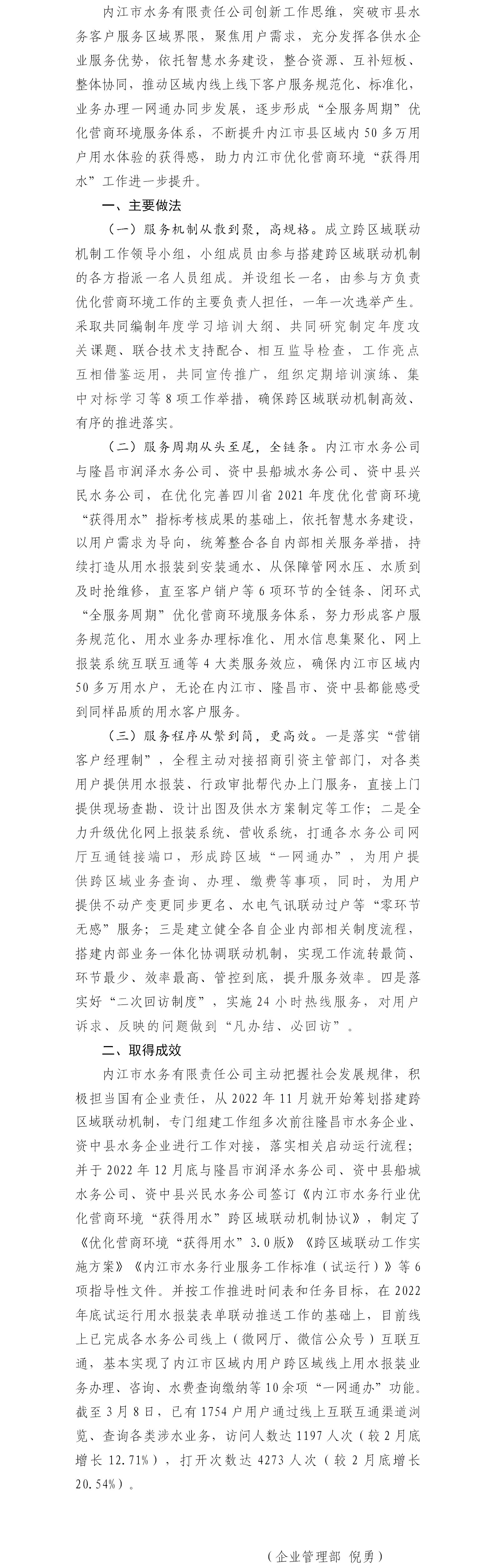 內江市啟動水務行業優化營商環境“獲得用水”跨區域聯動機制
