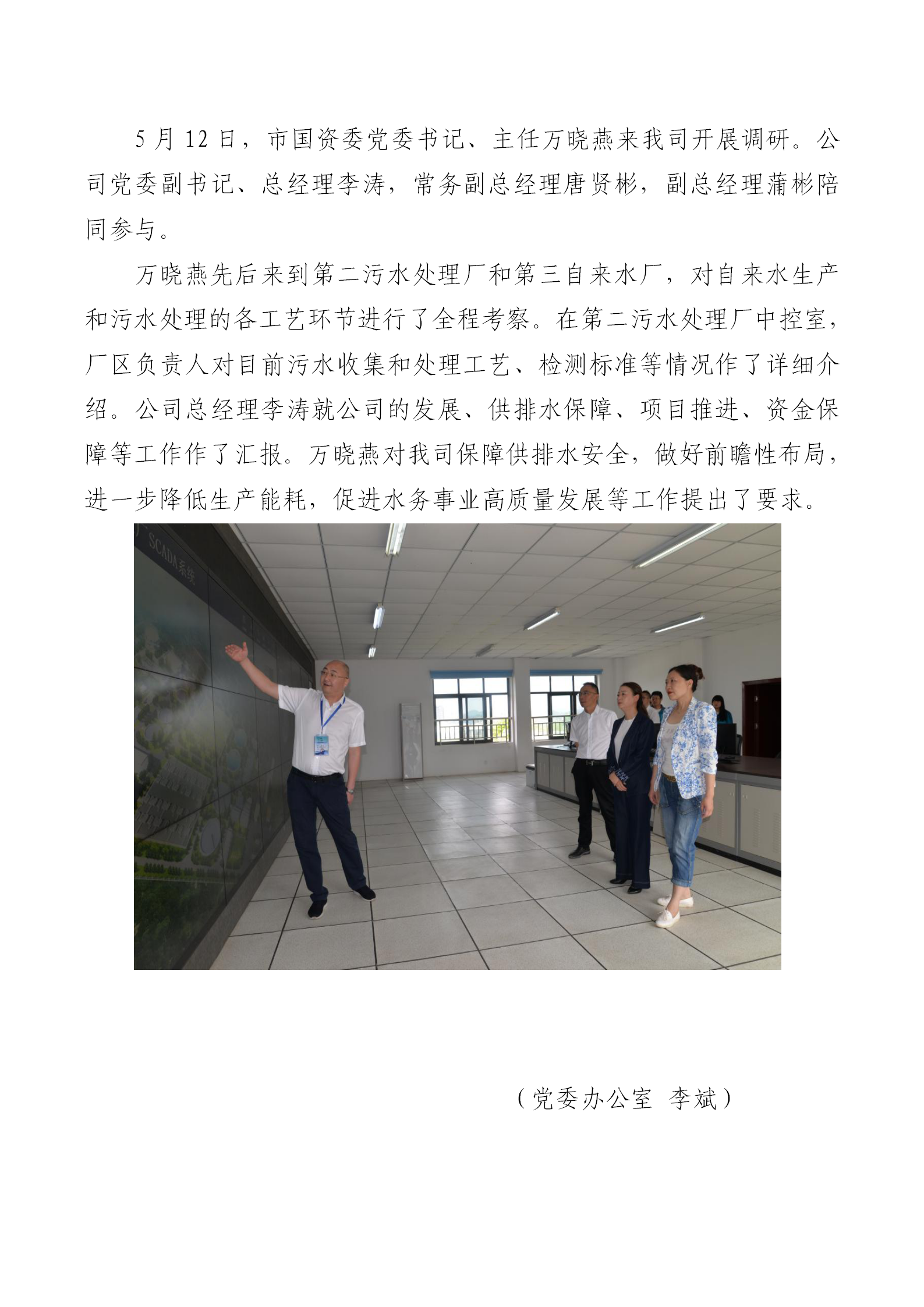 市國資委主任萬曉燕調(diào)研水務(wù)公司