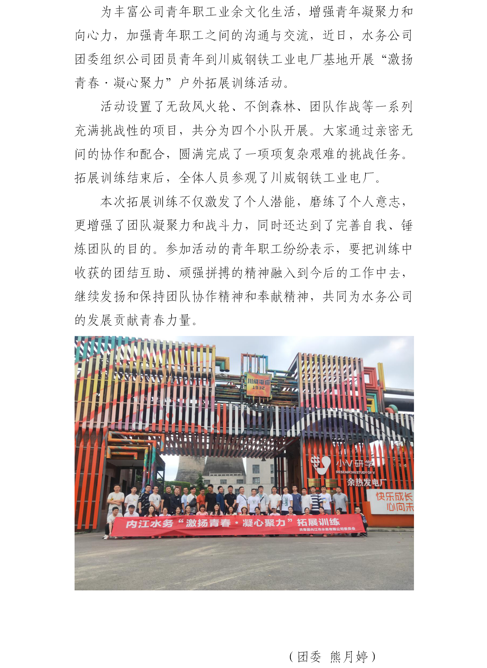 水務(wù)公司團(tuán)委開展“激揚(yáng)青春·凝心聚力”戶外拓展訓(xùn)練活動(dòng)