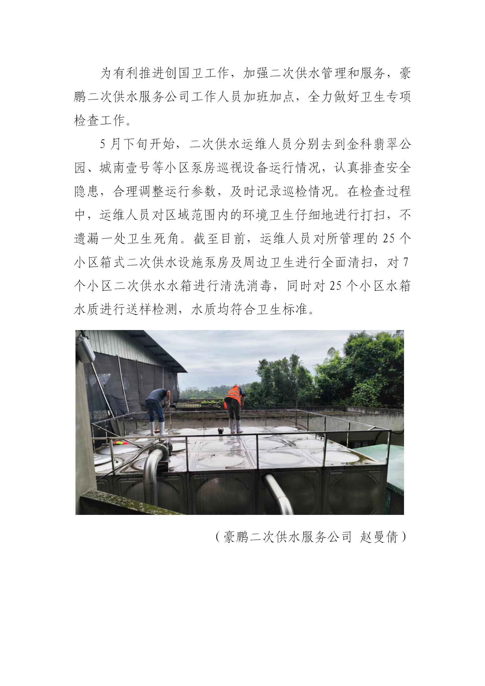 豪鵬二次供水服務(wù)公司開(kāi)展供水泵房衛(wèi)生專項(xiàng)檢查工作