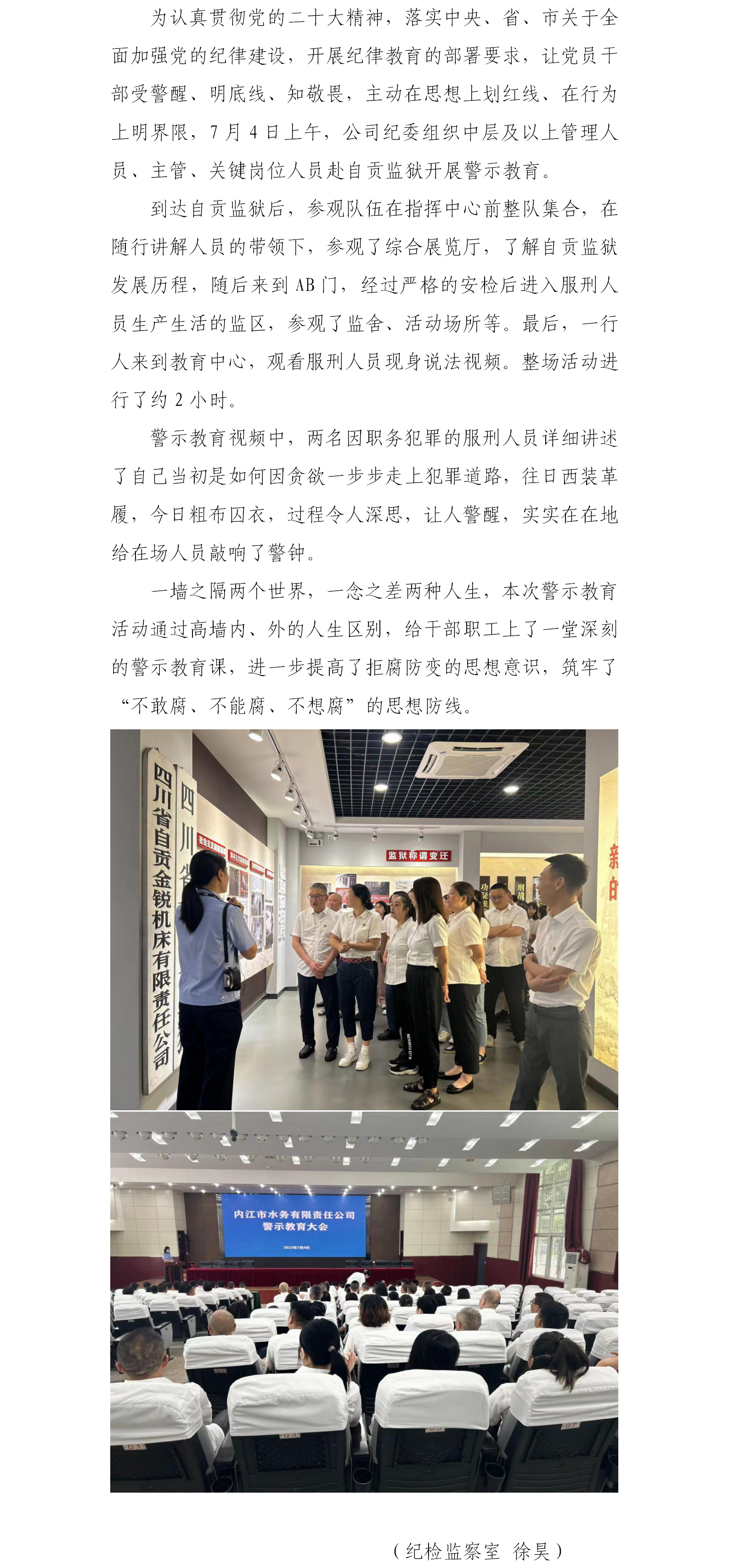 水務公司干部職工赴自貢監獄開展警示教育