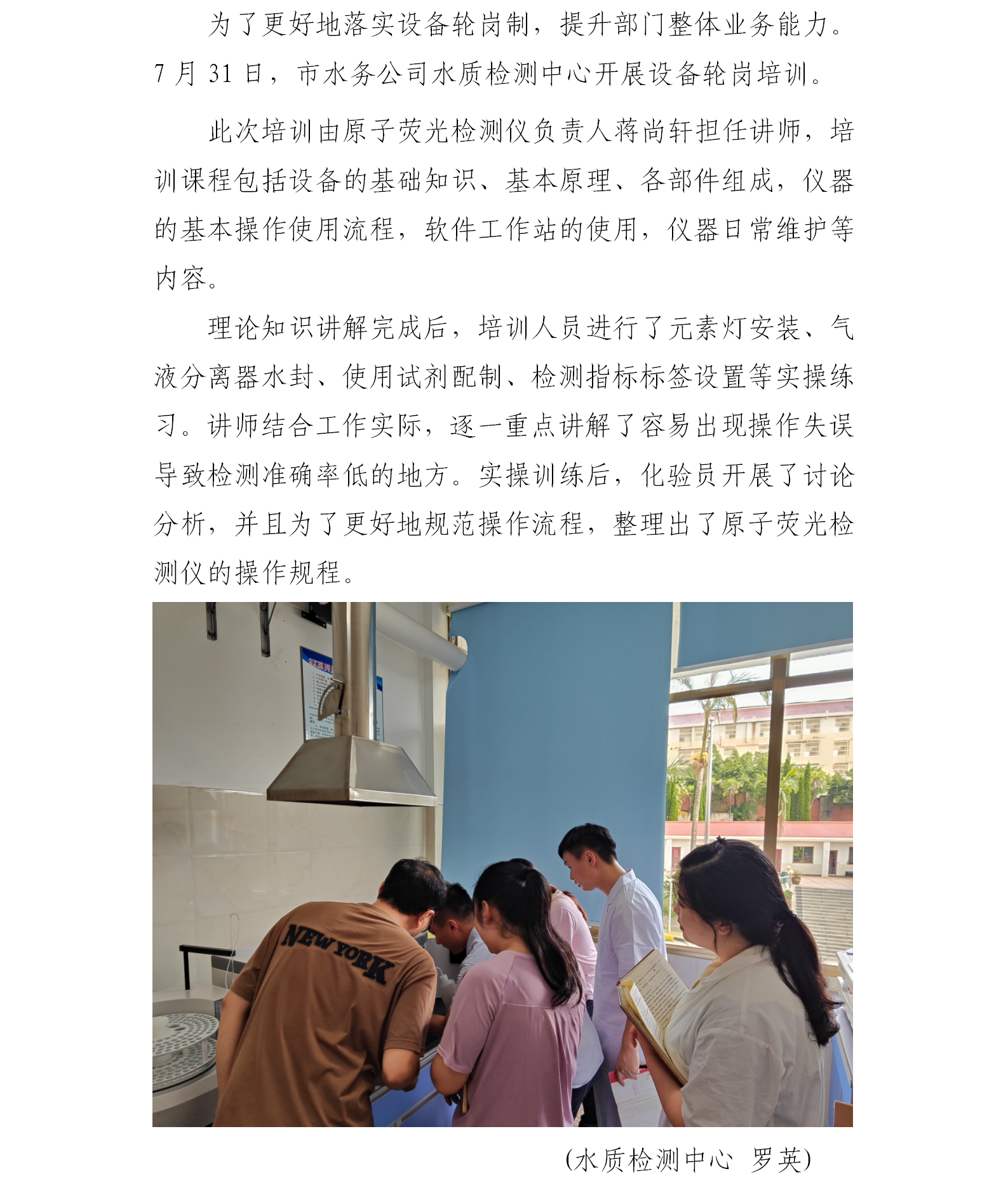 水質檢測中心開展設備輪崗培訓