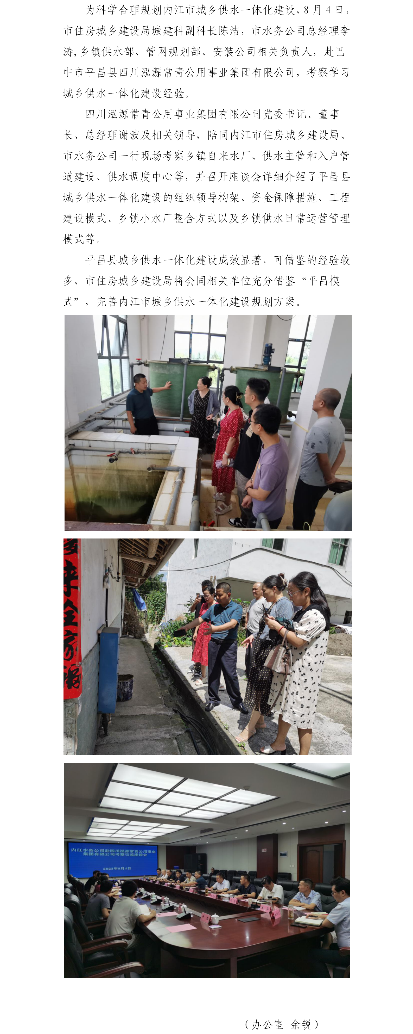 市住房城鄉建設局、市水務公司赴巴中市平昌縣考察學習城鄉供水一體化建設經驗