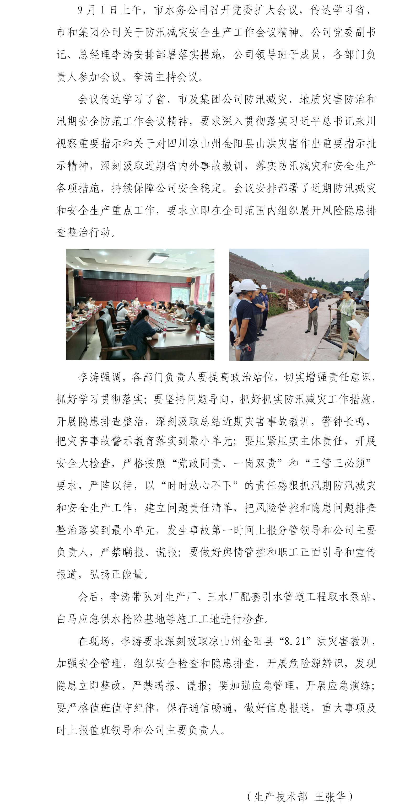 內江市水務有限責任公司召開防汛減災安全生產工作專題會、開展安全大檢查