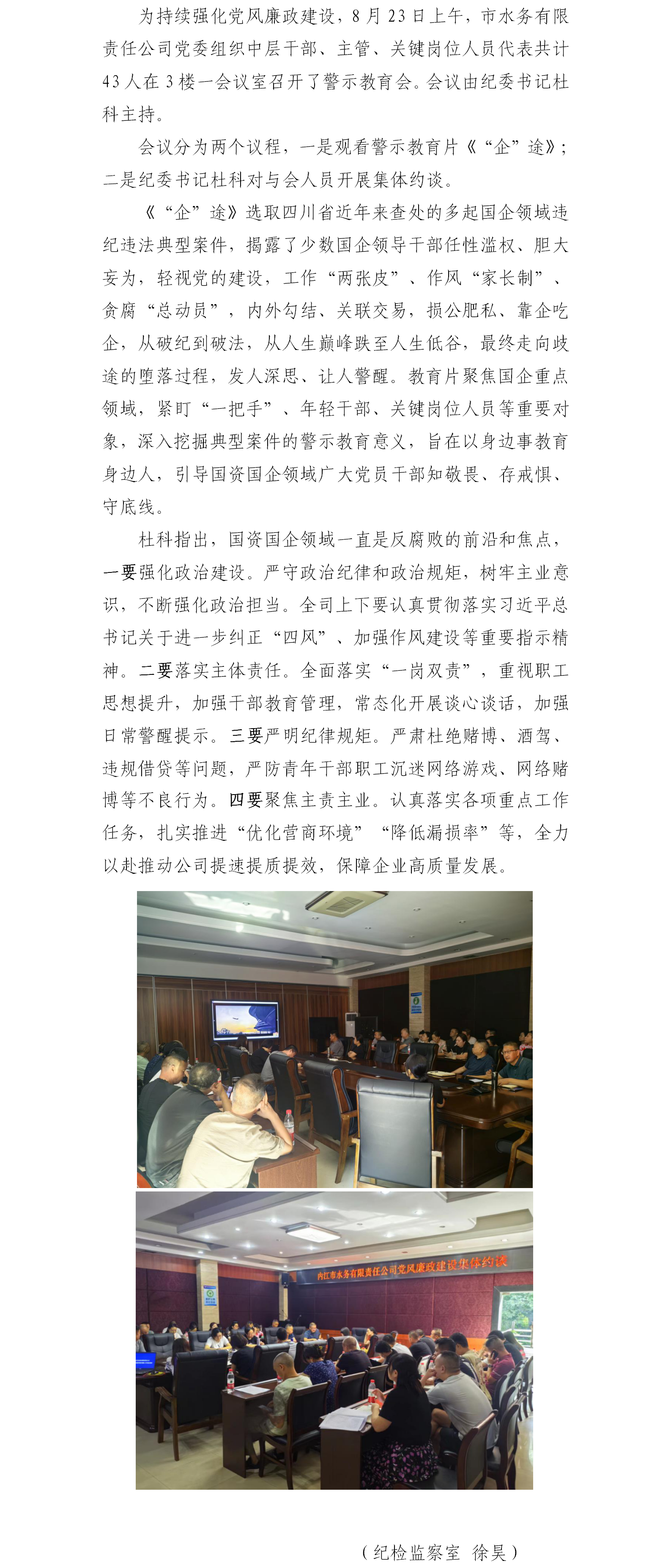 水務(wù)公司黨委組織開(kāi)展警示教育