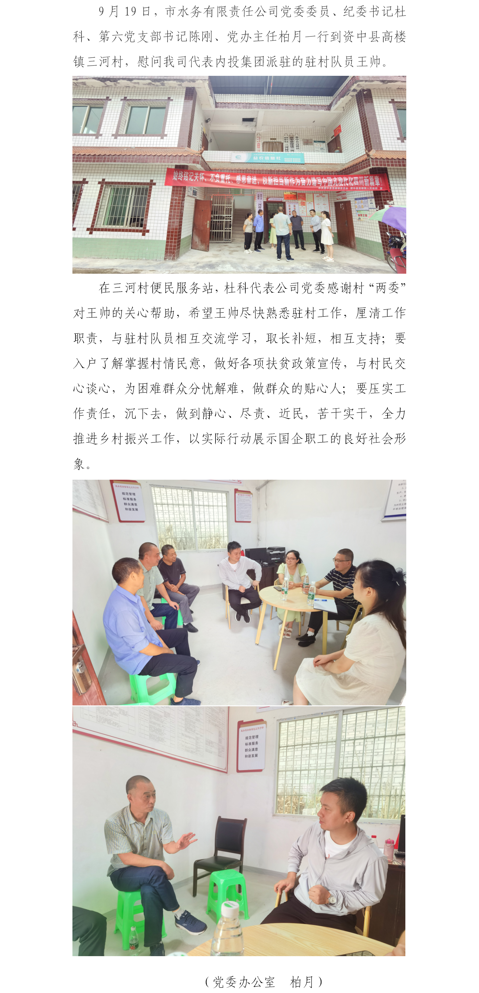 公司黨委慰問三河村駐村工作隊員