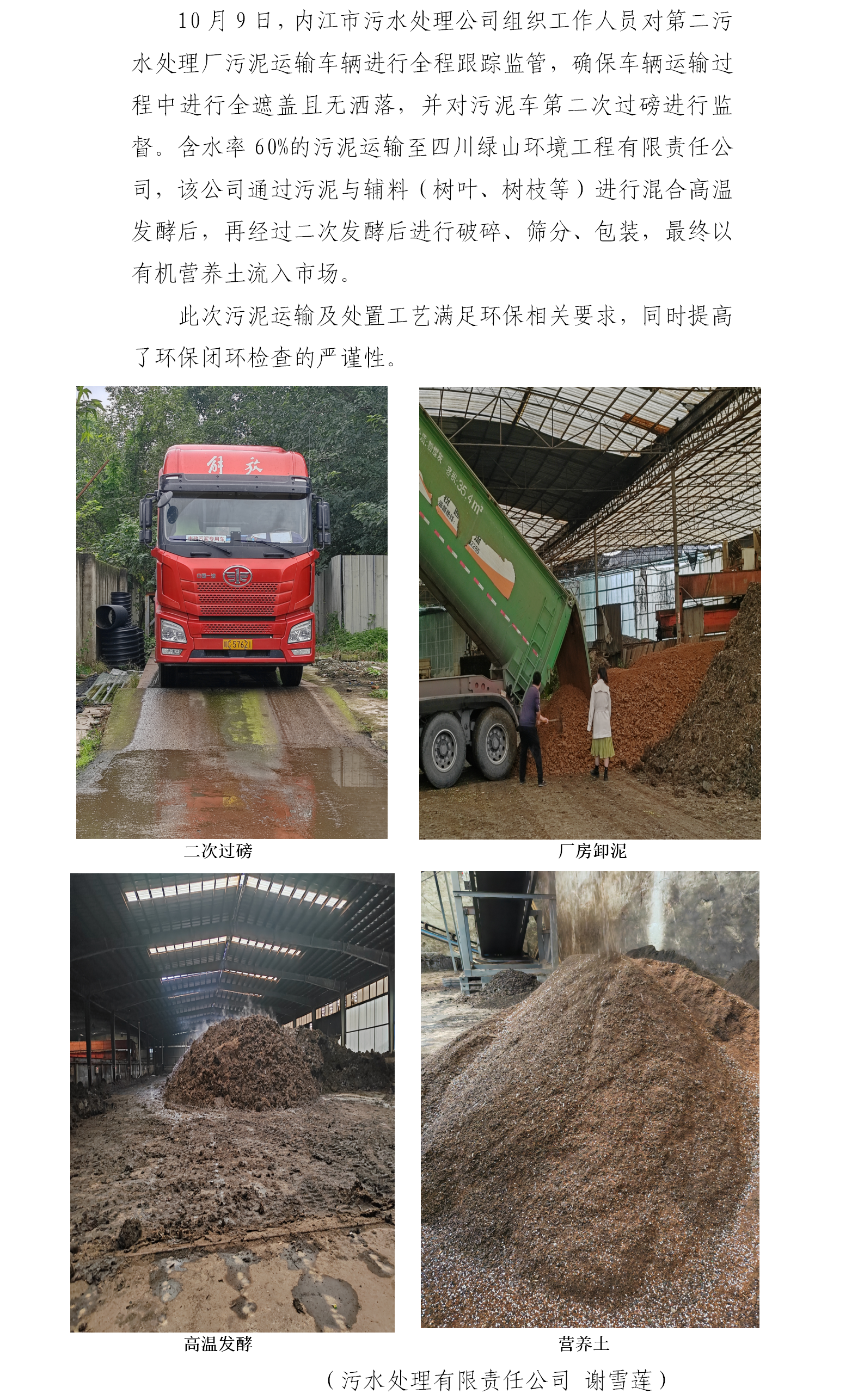 內江市污水處理有限責任公司跟蹤污泥運輸及處置情況