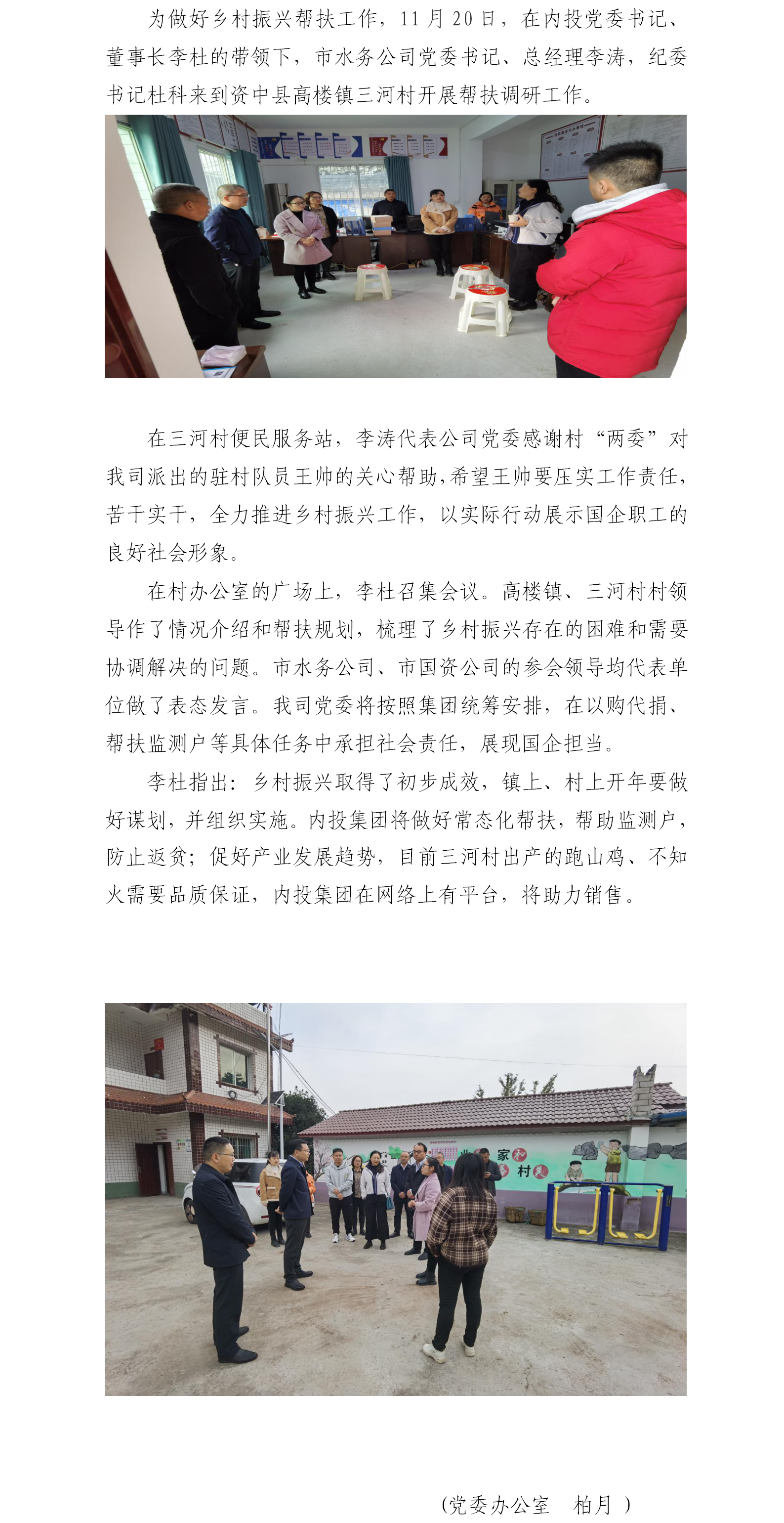 市水務公司到資中縣高樓鎮三河村 開展幫扶調研工作