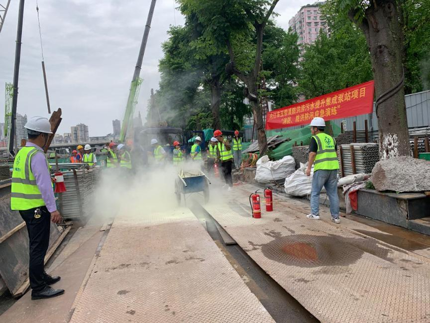 為切實做好夏季防汛工作,以練備戰提升施工單位作業人員搶險救援和防災減災救災能力,提前防范汛期安全風險,打牢安全度汛基礎。5月12日上午,內江市水務有限責任公司工程管理部牽頭,施工單位項目部負責,組織開展了內江市玉帶溪防洪排澇污水提升集成泵站建設項目防汛搶險綜合實戰應急演練。