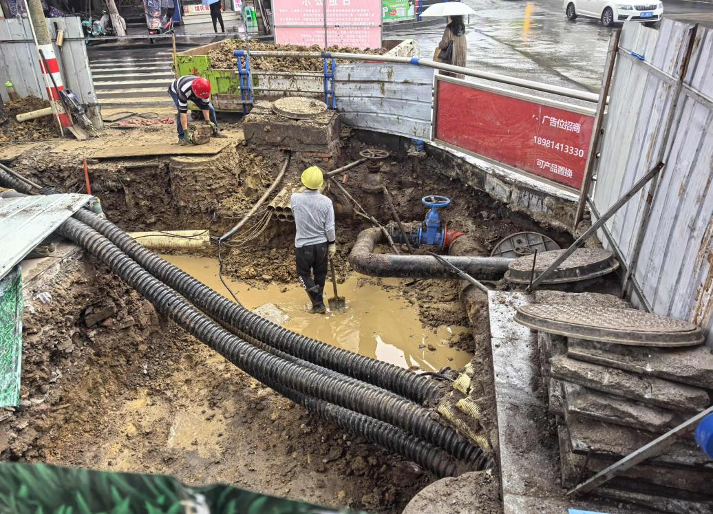 為保證麻柳壩大橋的順利建設,配合麻柳壩大橋施工以及文英街擴路工程,保障周邊居民的用水需求,市水務公司工程管理部組織實施了文英街DN300給水管道改造工程、麻柳壩大橋DN400、DN500、DN600給水管道改造工程。該項目在今年8月啟動,整個工程任務重、工期緊,工作人員每天堅守在施工現場,打的是一場與時間賽跑、與天氣抗衡的硬仗。暑往寒來,他們同烈日冷風共爭朝夕,從凌晨起舞,至子夜值守,以“黑白配”和錯峰作業交替進行的工作模式,保質保量高效地完成此次改造工程項目。