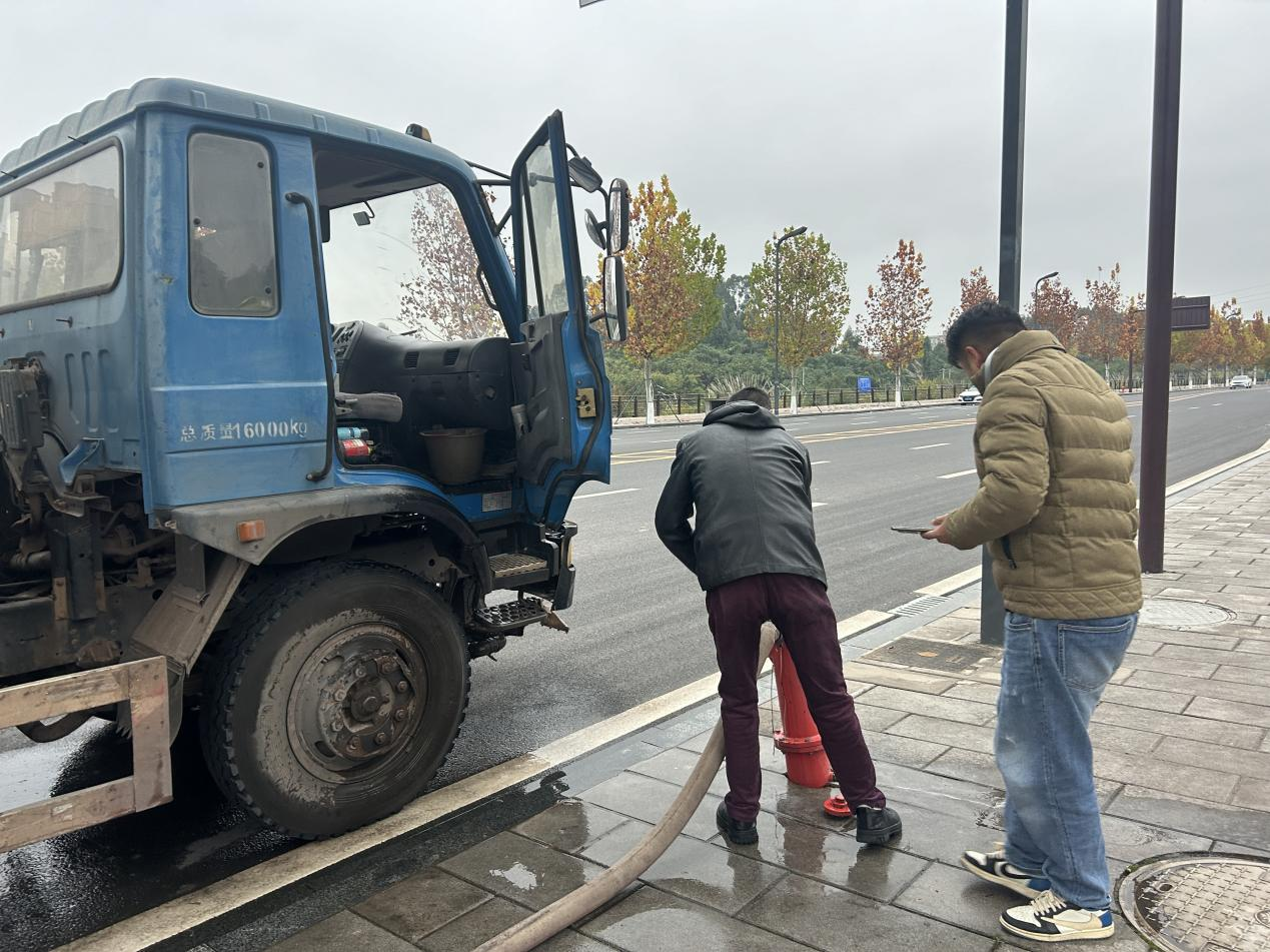 2024年12月5日下午5時許,市水務公司紀檢監察室主任熊月婷和管網運行部經理張羽在結束市國資系統黨務工作者培訓學習返回公司途中,經過棲霞路頤和上院附近時,發現一輛取水車在路邊市政消火栓違規取水,兩人立即上前進行制止并通知公司審計稽查部人員前往現場處置。