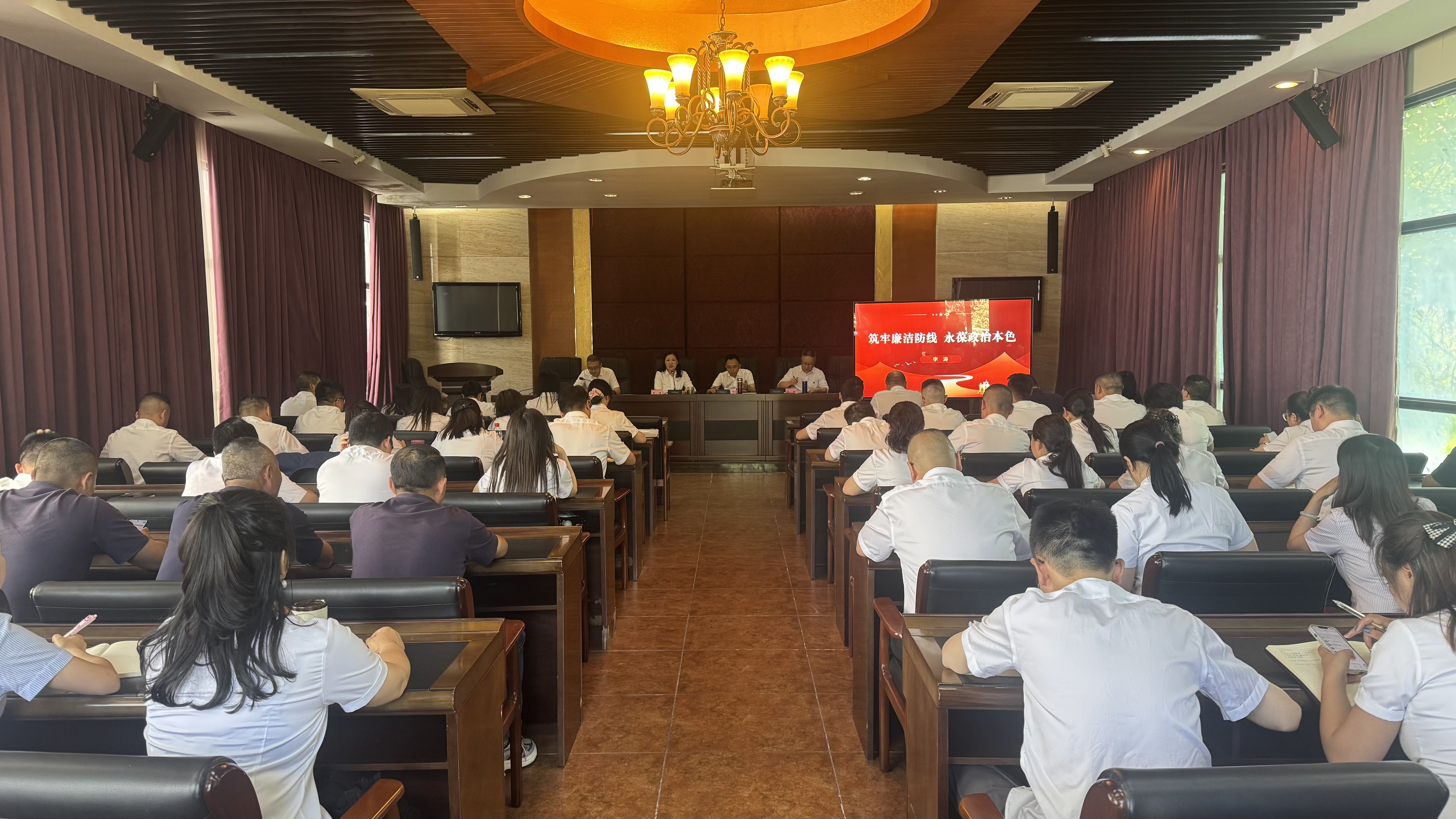 5月29日下午3點,市水務公司黨委書記、董事長、總經(jīng)理李濤在公司四樓二會議室主持召開警示教育會,旨在深入貫徹落實中央八項規(guī)定及其實施細則精神,進一步加強公司黨風廉政建設,提升全體員工的紀律意識和規(guī)矩意識。公司領(lǐng)導班子、中層干部、后備干部及青年人才成長計劃人員、部分黨員職工代表等70余人參會。