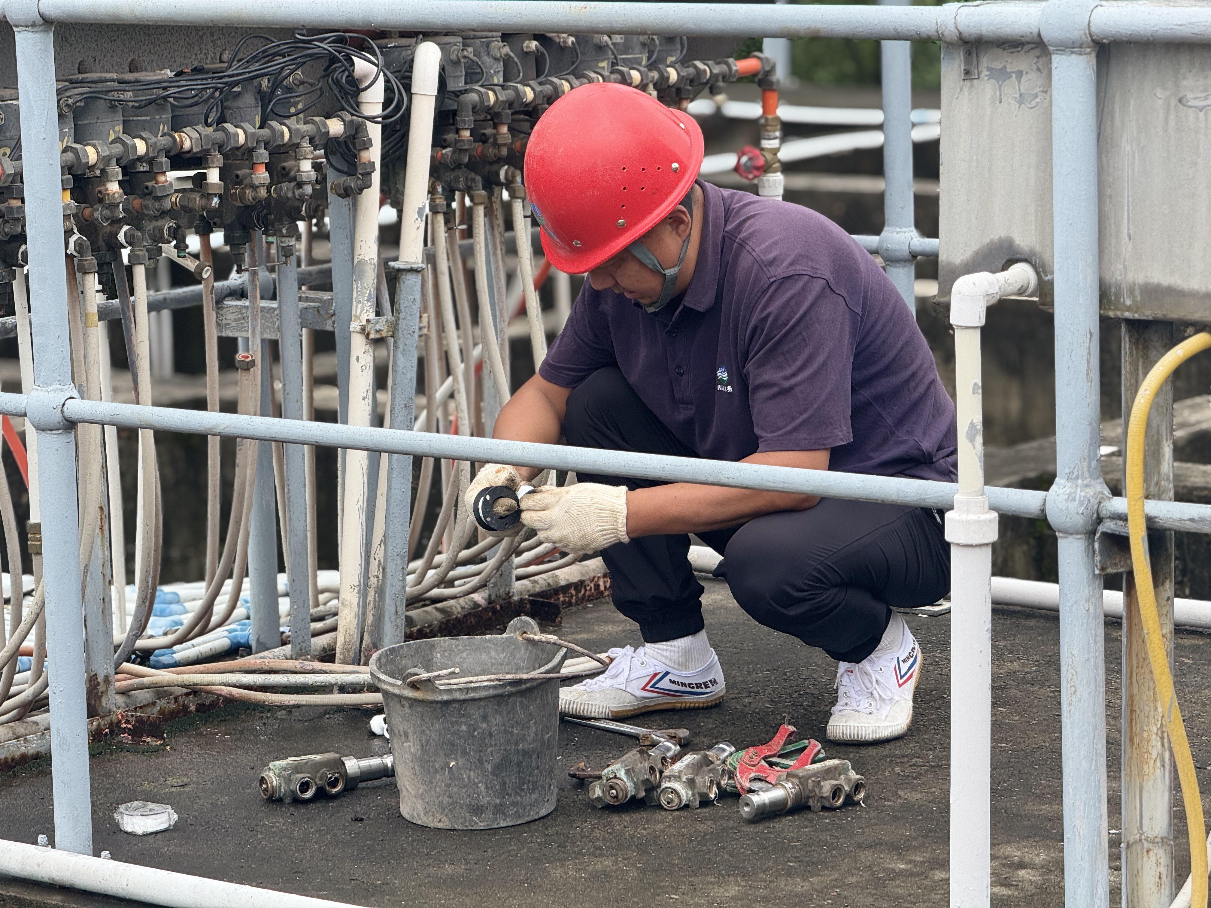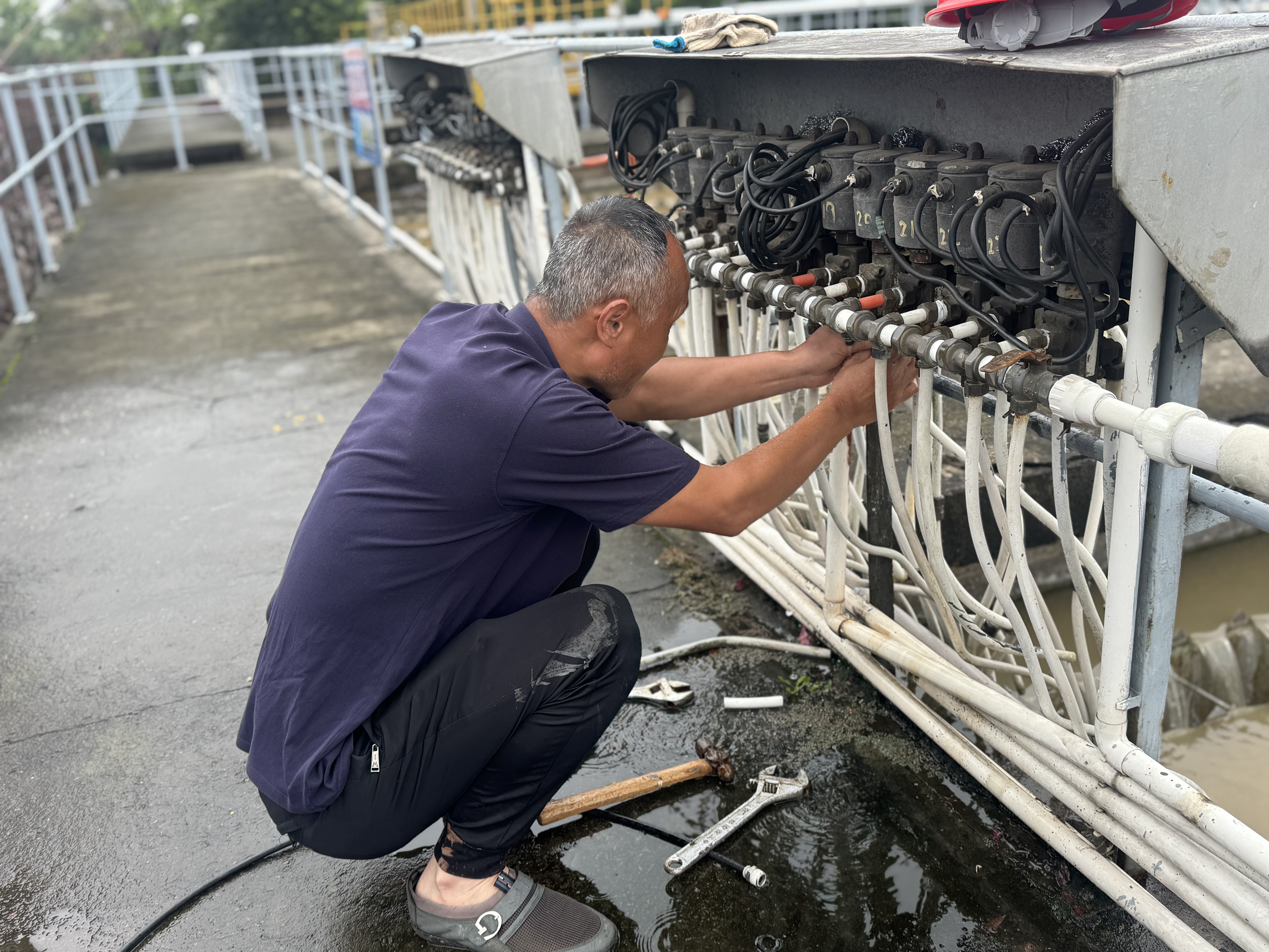 供水安全的責(zé)任重于泰山。7月8日清晨,剛剛完成三水廠二氧化氯投加設(shè)備維修的供水分公司維修組,聞令火速轉(zhuǎn)戰(zhàn)二水廠,投入到緊張的“戰(zhàn)斗”中:迅速展開(kāi)拆解、診斷、更換、調(diào)試工作。經(jīng)驗(yàn)豐富的維修師傅們動(dòng)作嫻熟而精準(zhǔn),他們以專業(yè)的技術(shù)和頑強(qiáng)的作風(fēng),與時(shí)間賽跑,與故障較量,高效疏通了排泥系統(tǒng)的“堵點(diǎn)”,確保流進(jìn)千家萬(wàn)戶的每一滴自來(lái)水,都經(jīng)得起最嚴(yán)格的檢驗(yàn)。