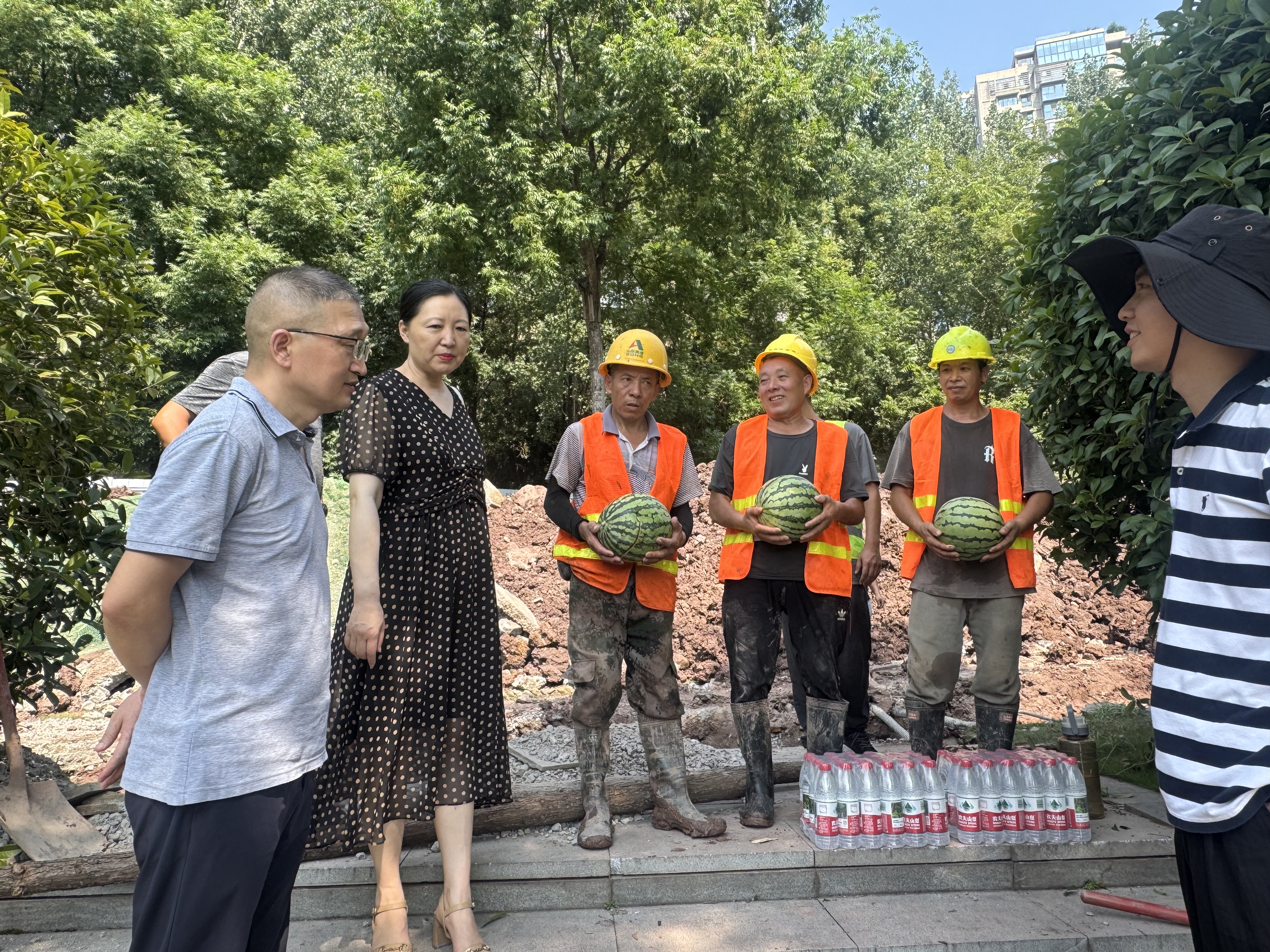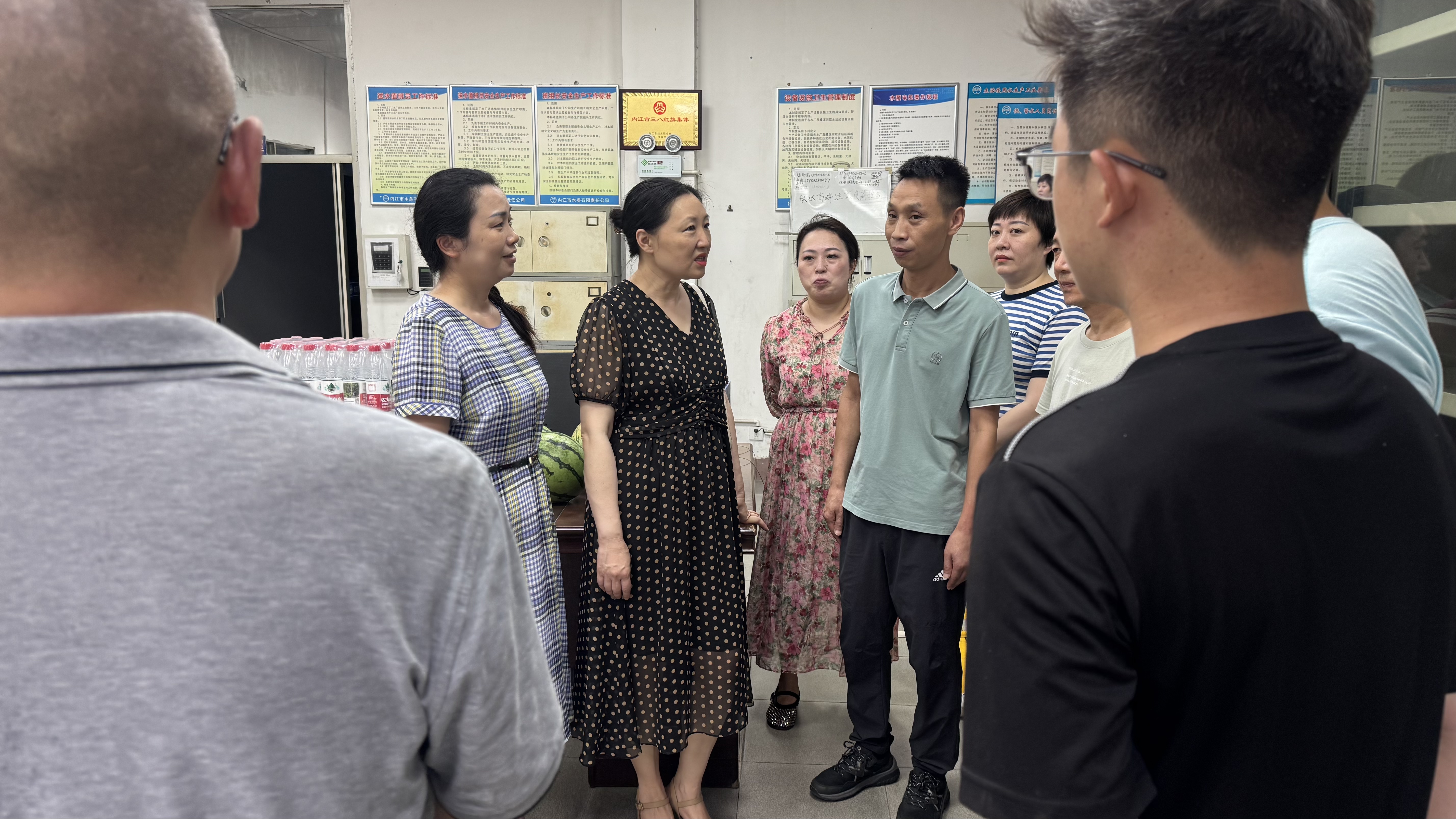 “送清涼”隊伍先后來到管網運行部、供水分公司、污水處理廠等廠區、部門及施工現場,為堅守一線的干部職工送去西瓜、礦泉水、藿香正氣液等防暑物品。李濤反復叮囑大家,一定要注意防暑降溫,合理安排工作和休息時間,確保身體健康。她強調,公司始終將員工的健康和安全放在首位,特別是在高溫天氣下,更要加強勞動保護,切實保障員工的合法權益。同時,希望大家繼續發揚艱苦奮斗的精神,堅守各自崗位,確保公司各項任務圓滿完成。