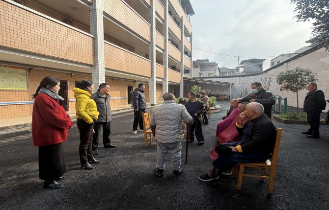 慰問組為老人們送上保溫杯、保暖內衣、現制糕點等暖心物資,并向大家致以新春的美好祝福。杜舟一行實地查看了敬老院的后廚、老人居室等場所,詳細了解了老人們的飲食起居、日常照料和安全管理等情況。