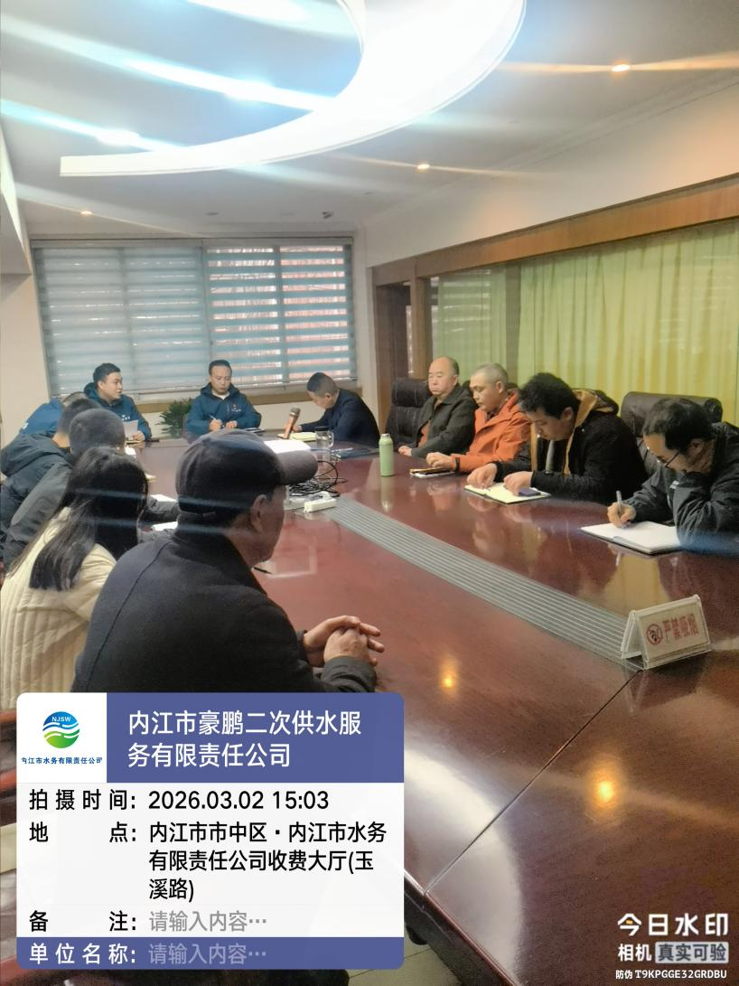 為系統復盤2025年管道直飲水項目建設經驗,精準破解項目推進中的難點堵點,科學謀劃2026年高質量發展路徑,3月2日,豪鵬二供公司聯合豪盛安裝公司、豪博設計公司召開管道直飲水專題會議。作為公司培育“第二增長曲線”的核心業務,本次會議聚焦項目設計、安裝施工、營銷推廣及后期運維服務全鏈條,通過深度研討與協同聯動,為新一年度項目規范、高效推進奠定堅實基礎。