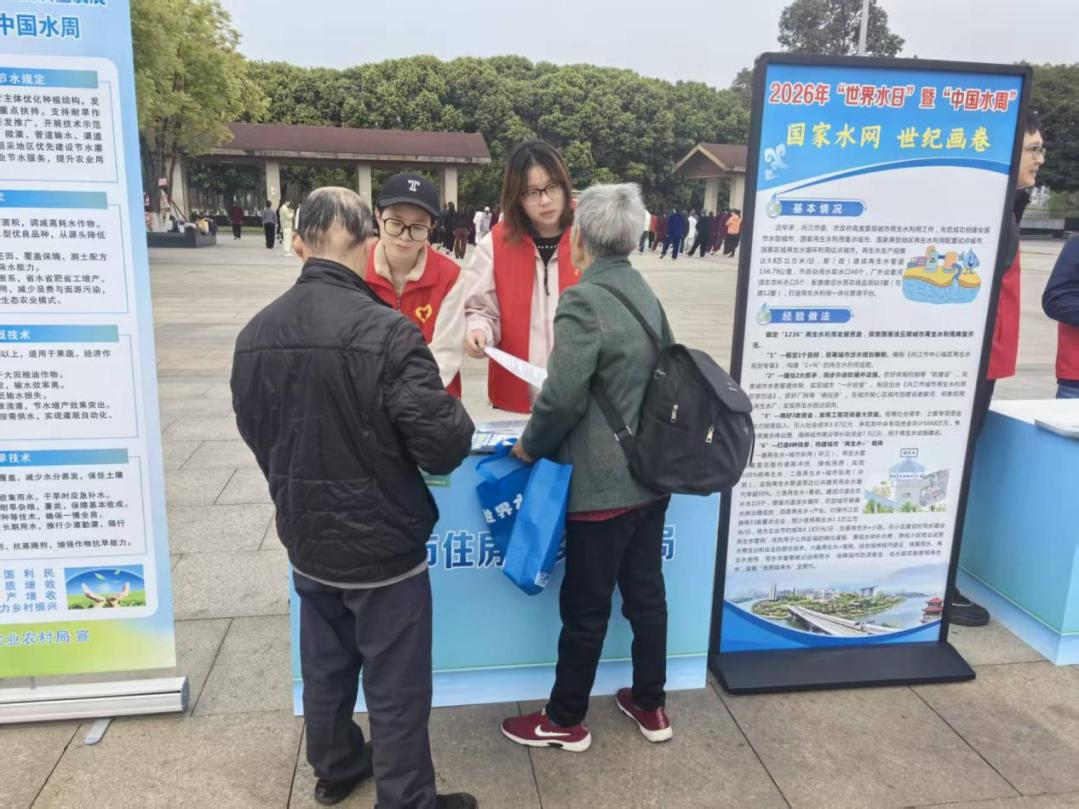3月22日上午,2026年“世界水日”暨“中國水周”集中宣傳活動在市中區(qū)大洲廣場盛大舉行。今年的活動主題為“國家水網 世紀畫卷”。市水務公司積極響應號召,與市住建局組建志愿服務隊,共同參與此次活動,攜手營造惜水、愛水、護水的濃厚社會氛圍。