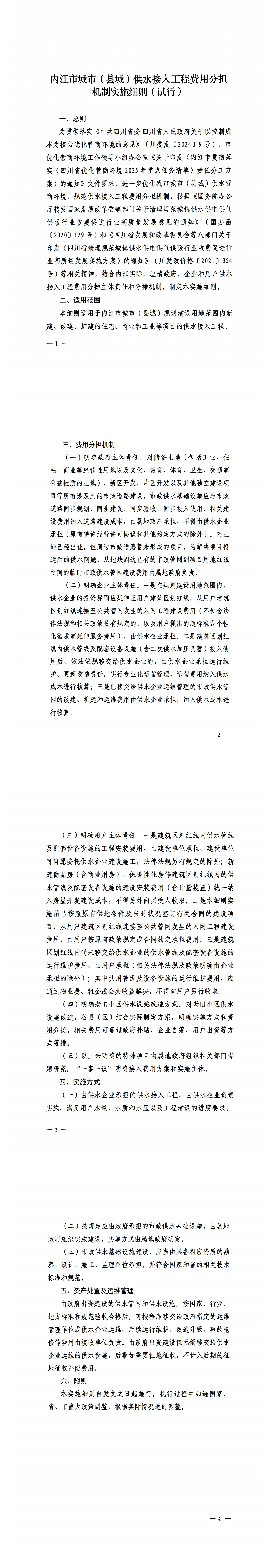內(nèi)江市城市(縣城)供水接入工程費(fèi)用分擔(dān)機(jī)制實施細(xì)則(試行)