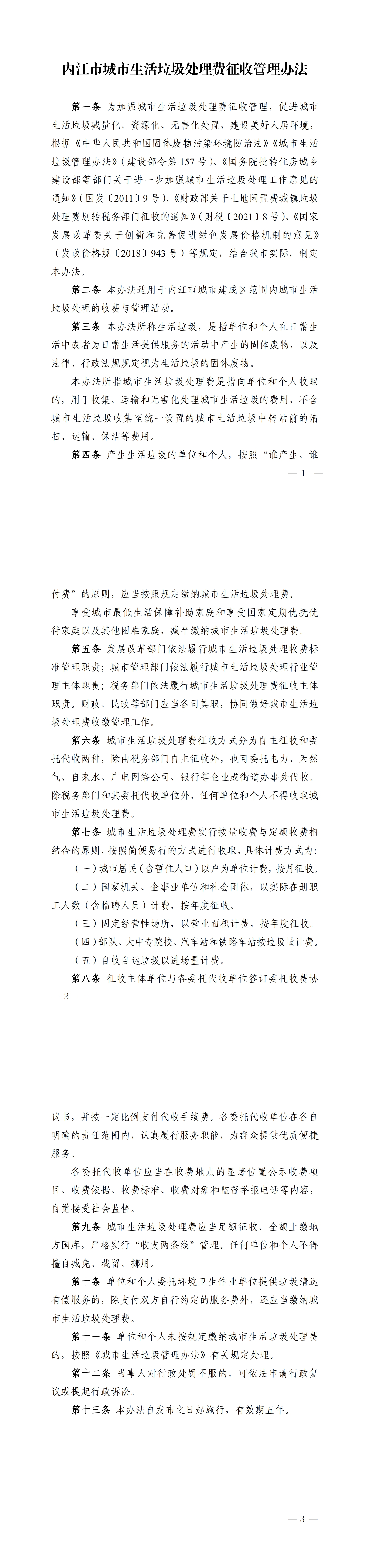 內江市城市生活垃圾處理費征收管理辦法